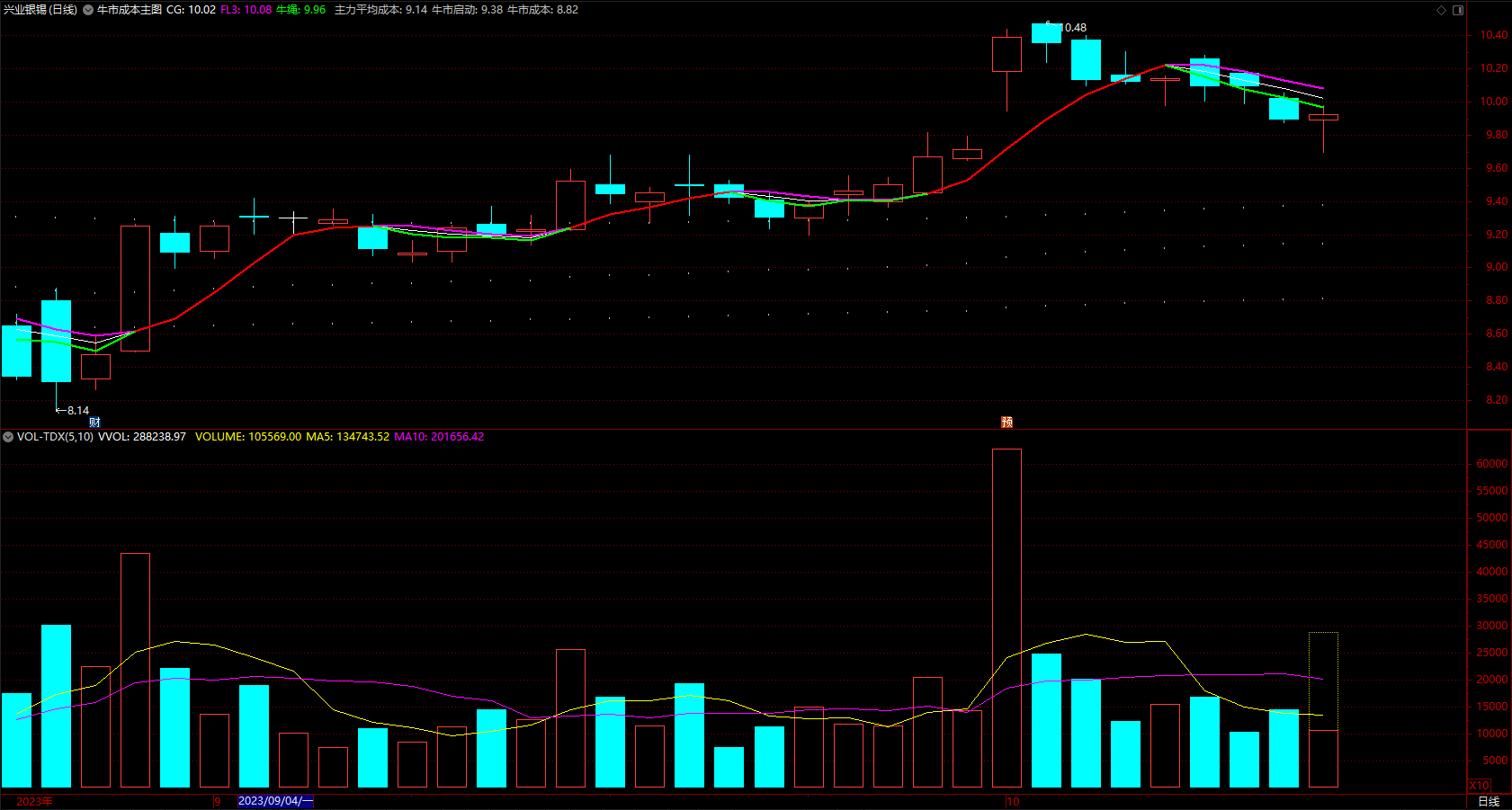 牛市成本:EMA(COST(34),3),LINETHICK2,POINTDOT;