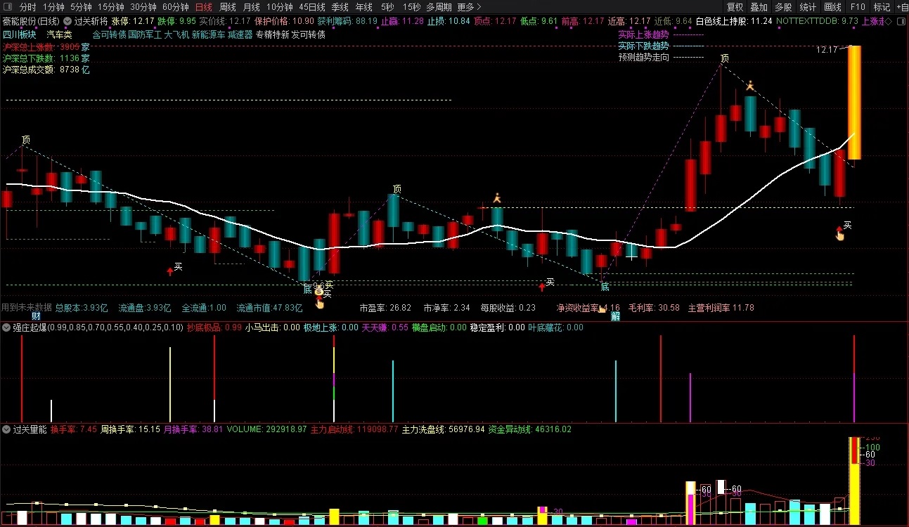 (【通达信】过关斩将主图+强庄起爆副图+过关量能副图系列主副图套装指标,源码分享)