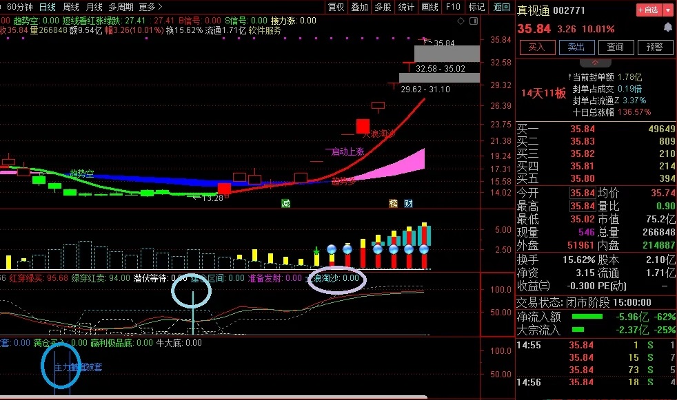 (【大浪淘沙】通达信大浪淘沙主副图指标套装 ,助你有序进出主升浪!源码分享)