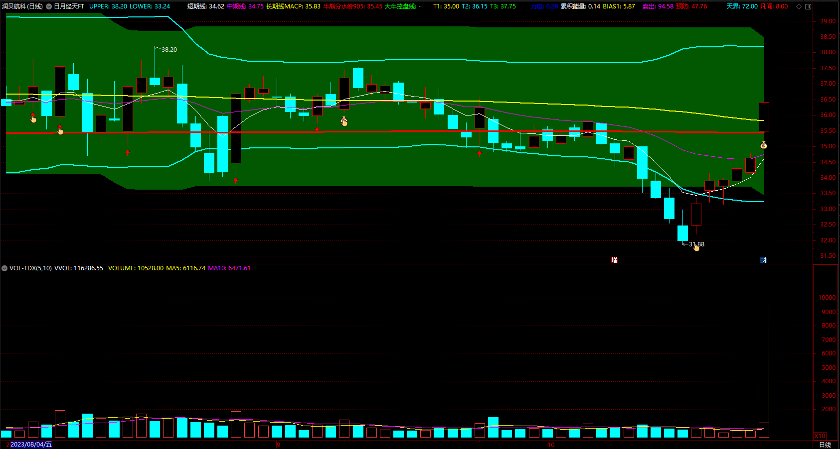 (日月经天天河通道主图 通达信红箭头钱袋子波段 指标公式 源码 )