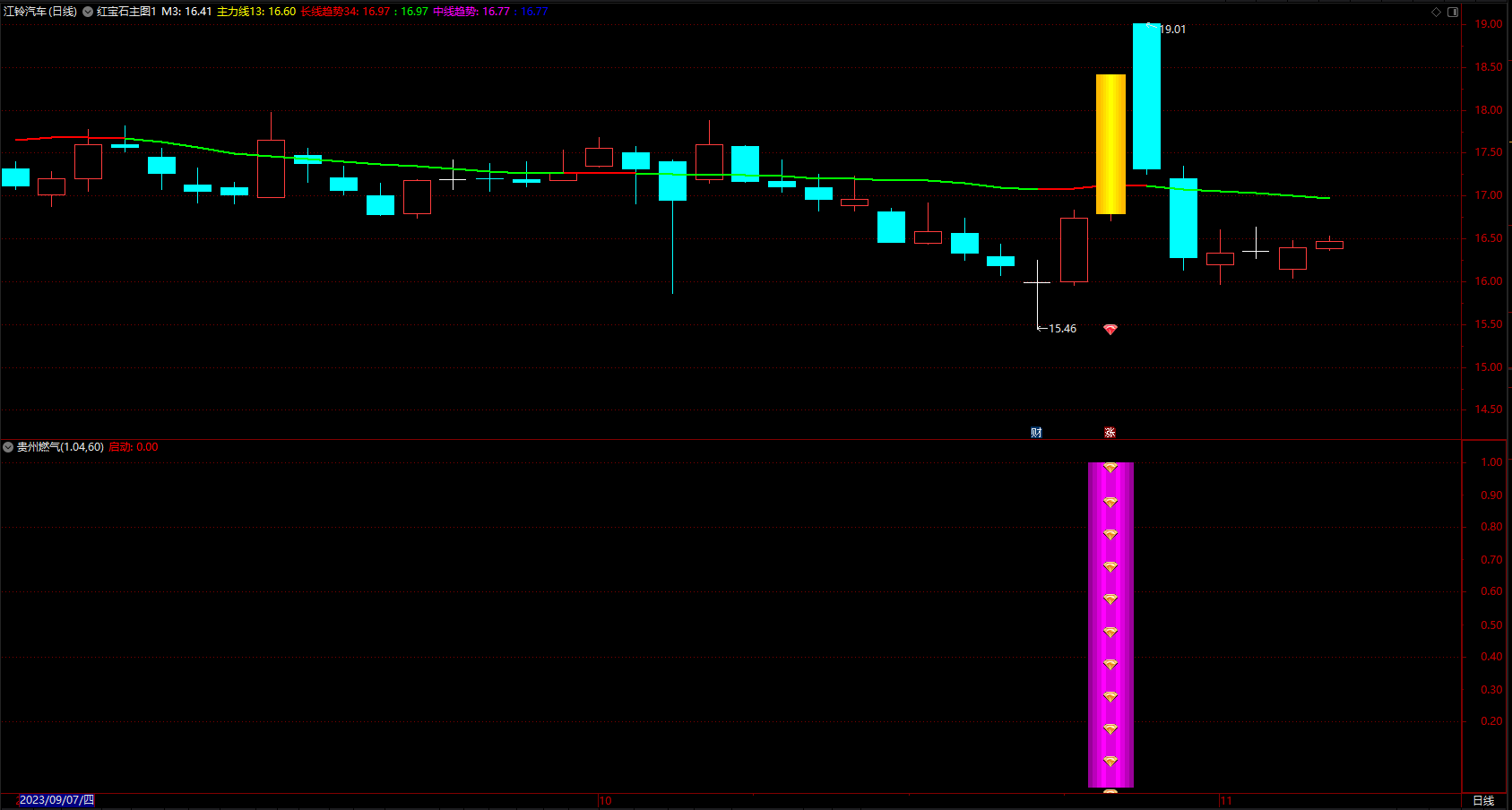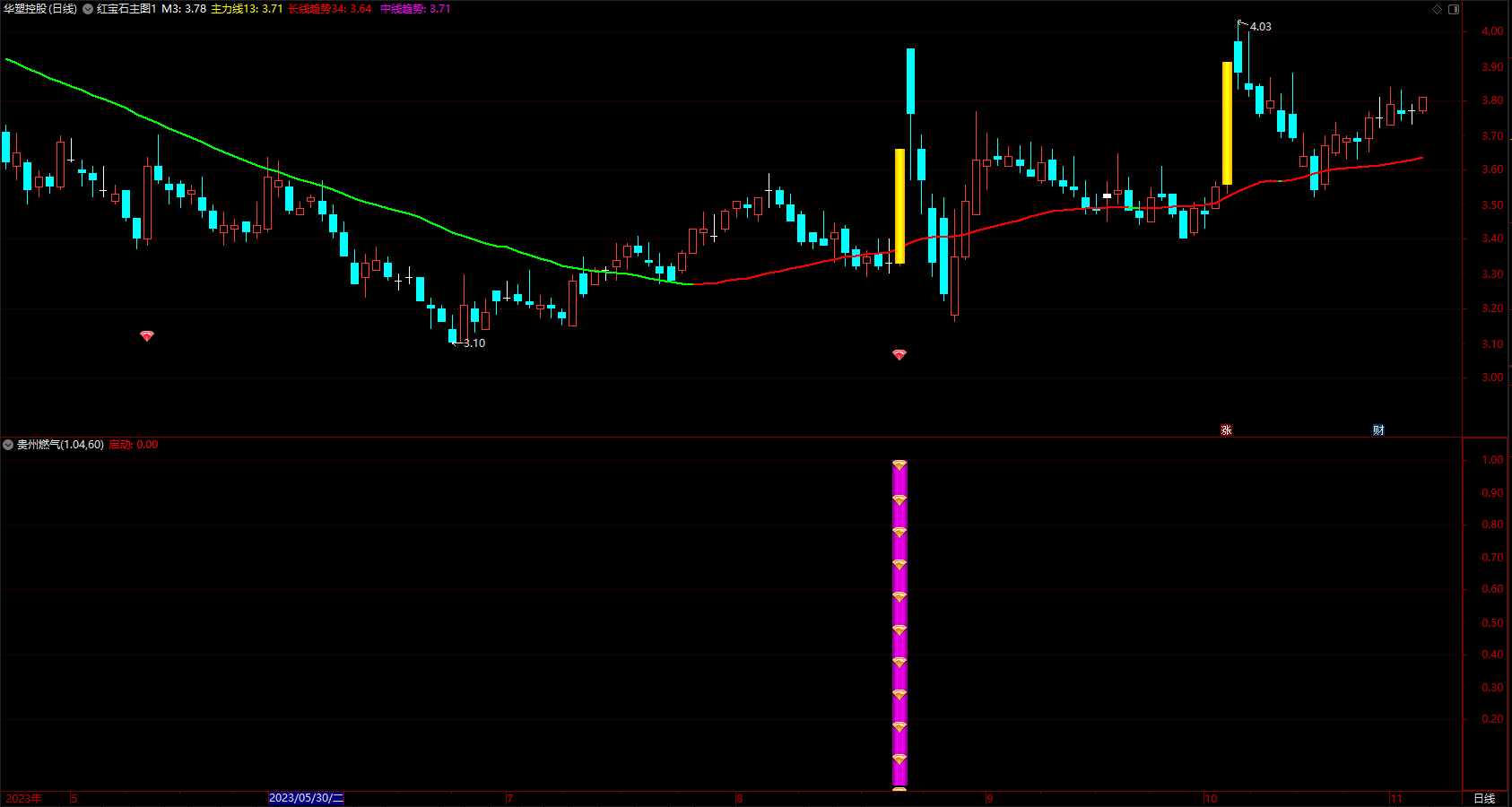 共振参考 宝石红绿买卖点主图 通达信彩柱钻石指标公式 副图 源码