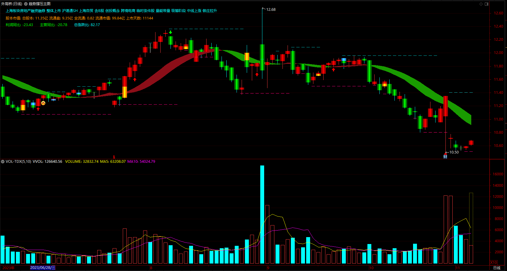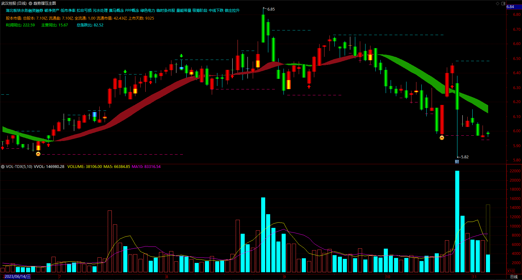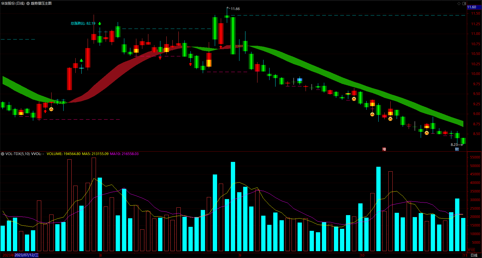 (股票撑压线指标 通达信趋势彩带多空提示公式 主图 源码 )