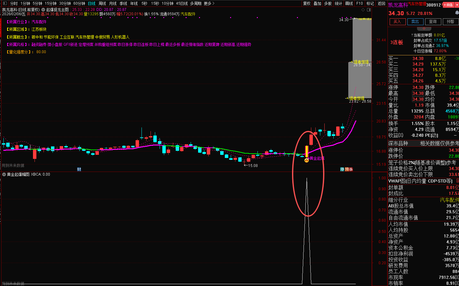 (起爆捉龙主图指标(狙击牛股起爆点,擒牛捉龙好帮手,加入了行业概念,量化评分,短线攻击线,趋势线等))