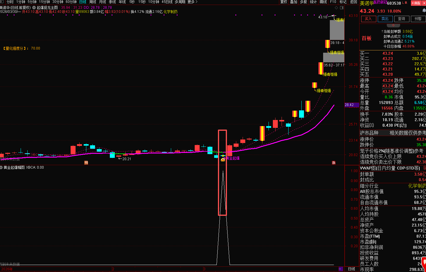 指标简介:起爆捉龙主图+黄金起爆幅图+黄金起爆选股+强者恒强选股