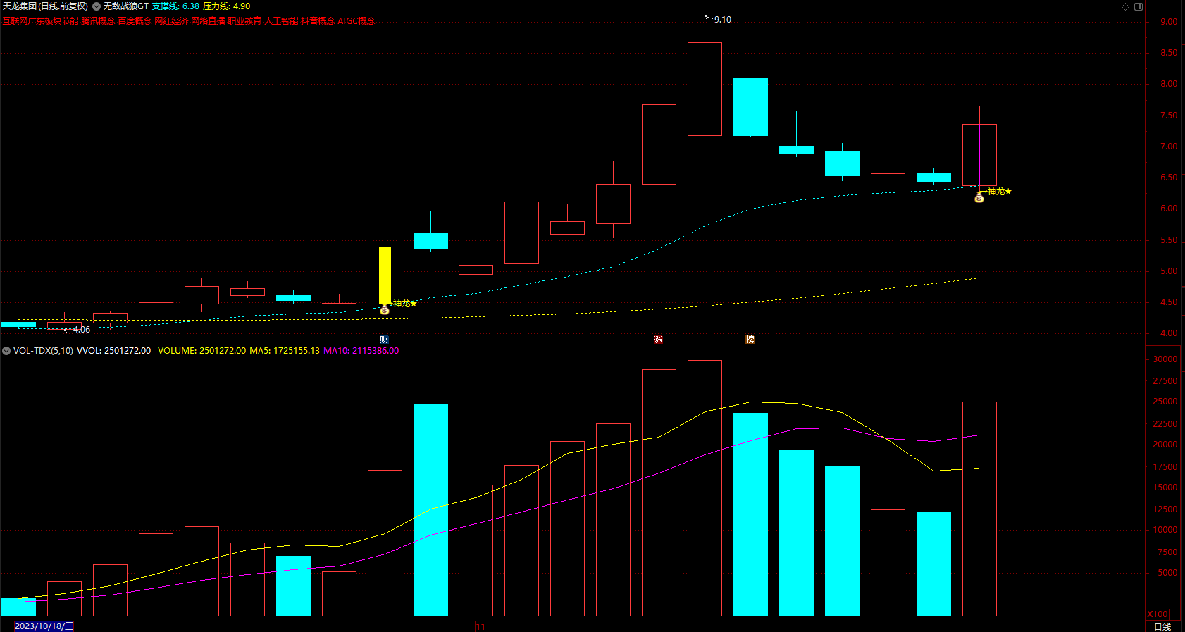 警捕捉牛股 无敌战狼 通达信神龙趋势买卖点选股指标 主图 无未来 源码