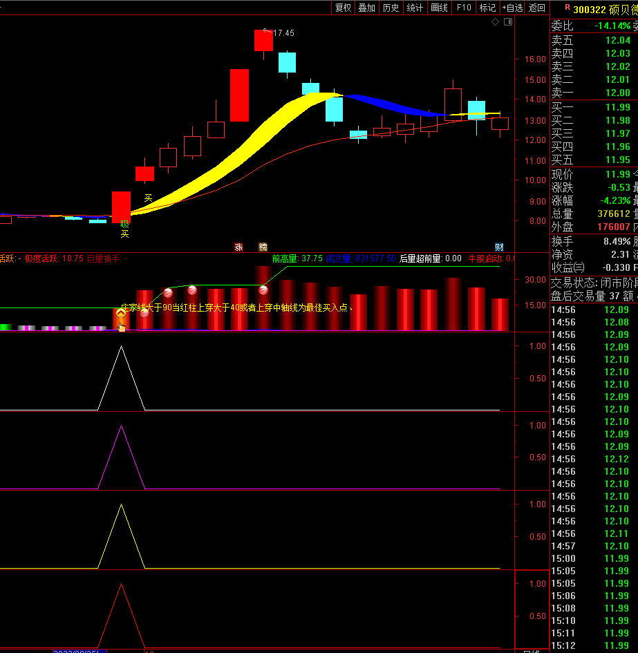 3、龙头量能副图公式:通过对个股成交量的深入剖析和细致观察,一旦发现异常波动,该公式便会发出“牛股启动”信号。