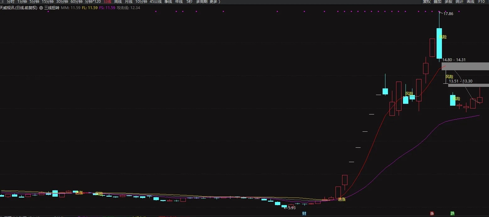 【三线扭转攻击】通达信三线扭转攻击优化主图指标,源码分享
