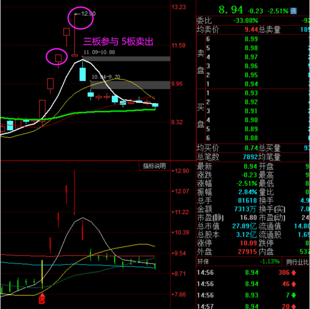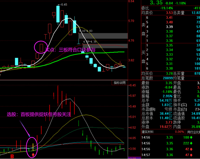 买点:那么基本在三板参与,3板参与的口诀是:9:35前股价不能绿。5分钟内站稳分