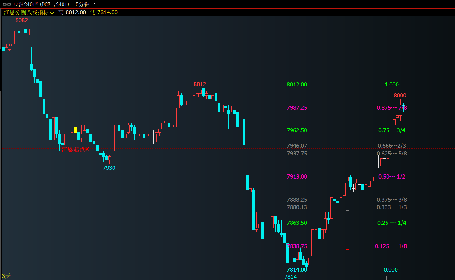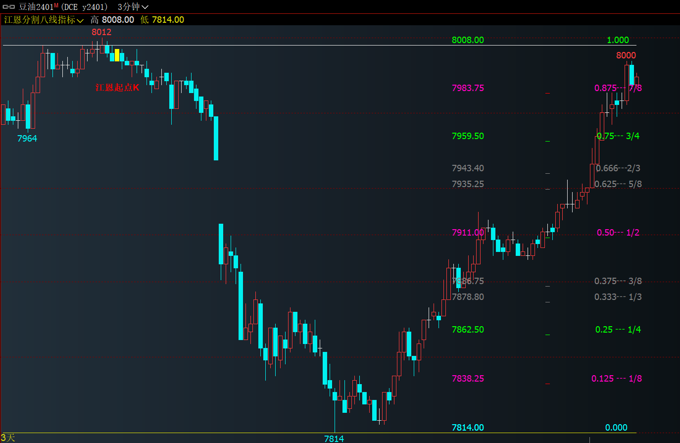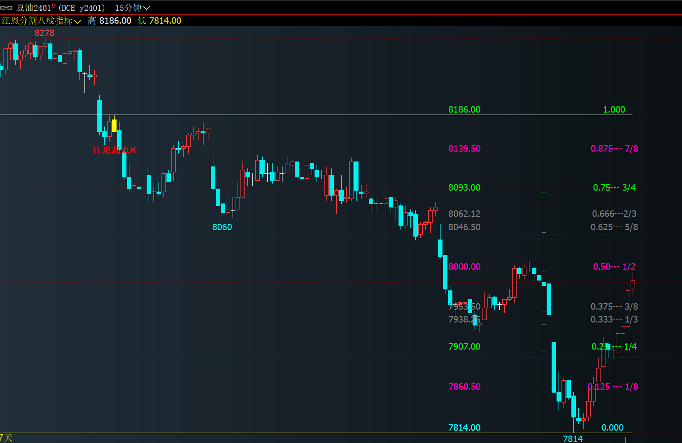 (江恩八线比例分割自动画线比例值文华财经期货指标公式大全期货短趋势方向支撑压力画线)