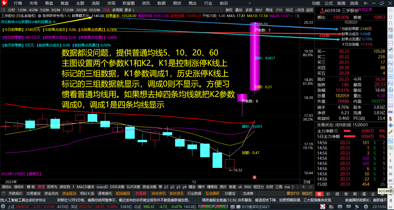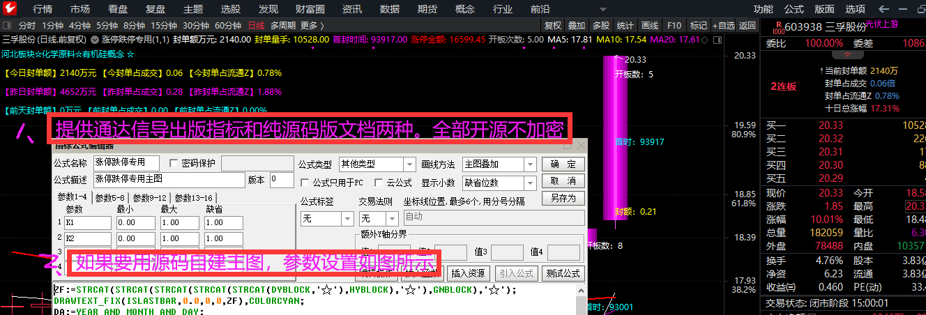 (通达信抓板专用主图,显示封板金额,封板时间,炸板次数,最近三日的封板额比)