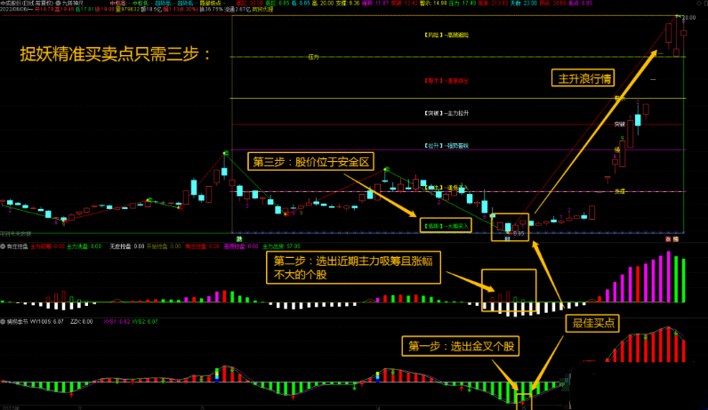 主力自己各种操盘阶段,可以清楚地分辨出来,帮助我们及时发现主升浪,跟着主力吃肉!含选股公式