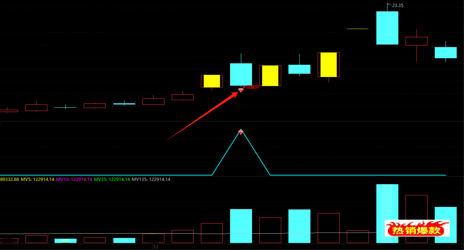 3、在第三天只要盘中或者尾盘阳线超过阴线价格,收盘最好是真阴线(k线绿,股价下跌)则可以关注。