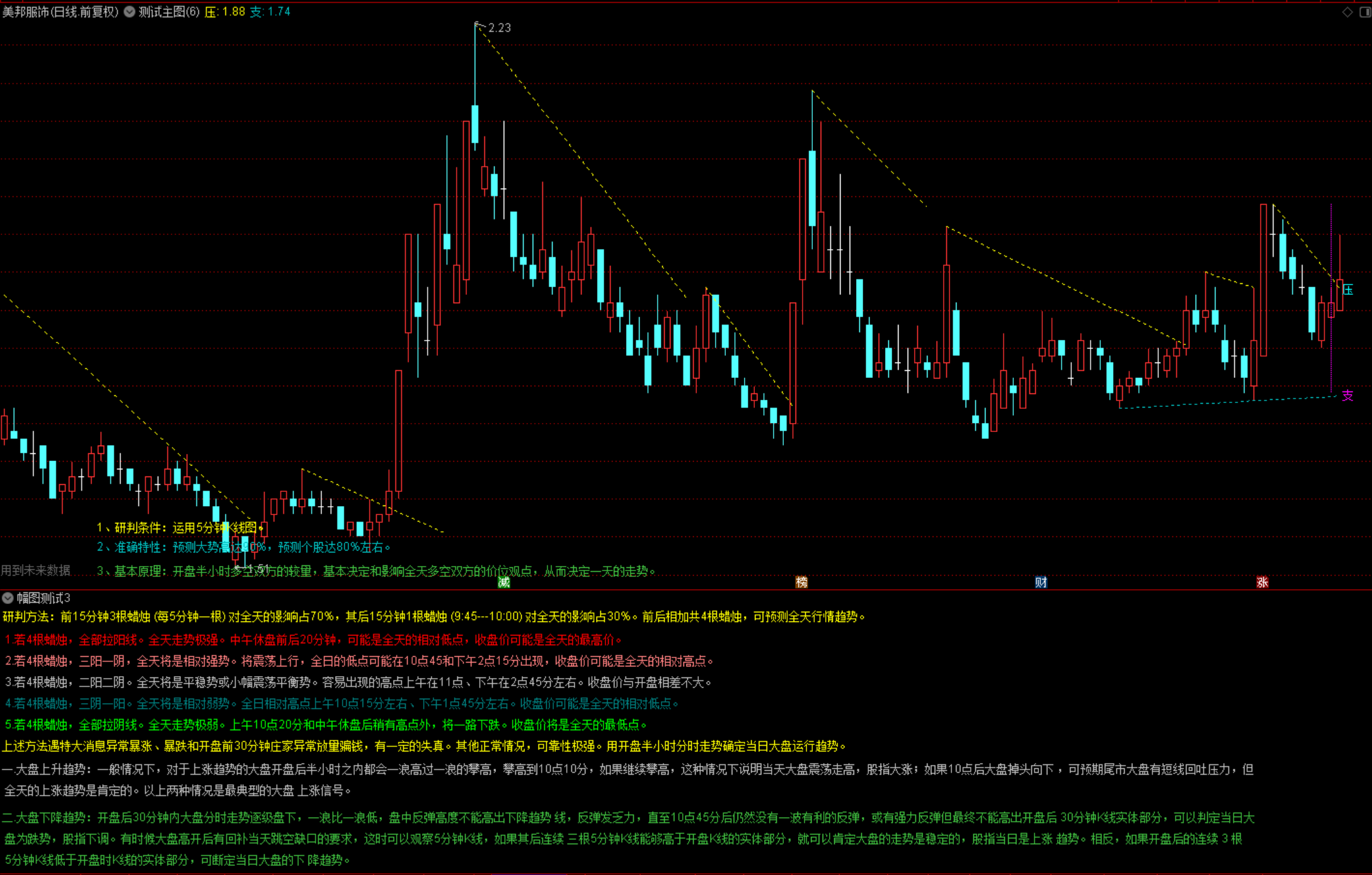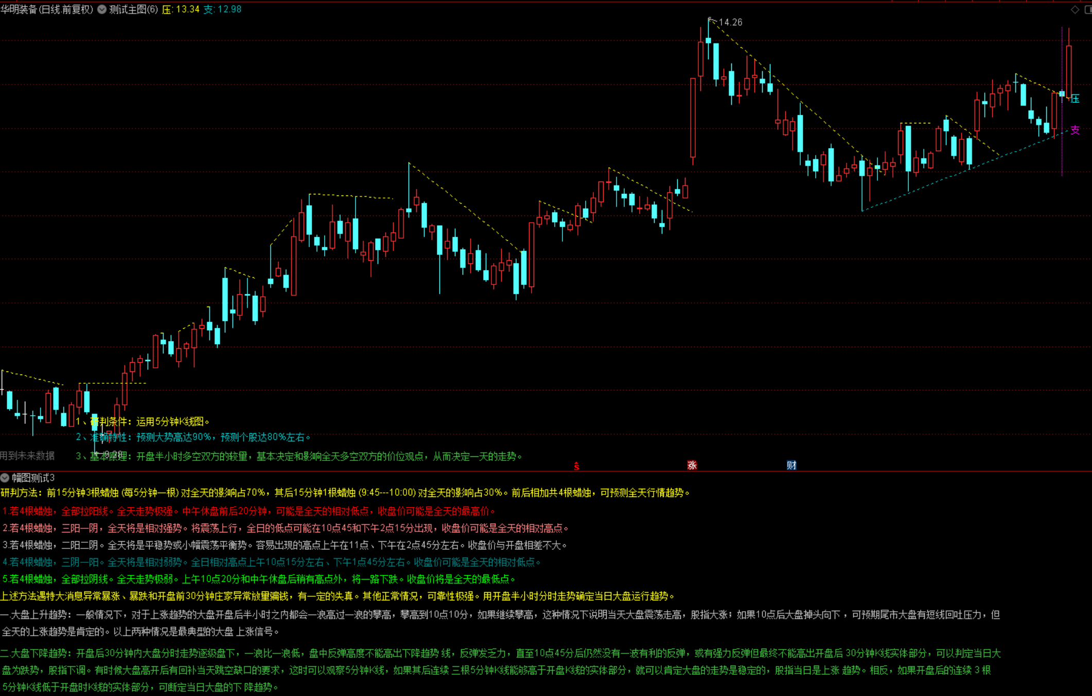 (通达信5分钟看盘支压划线操作提示主图+K线形态解析大盘预测幅图指标公式源码下载)