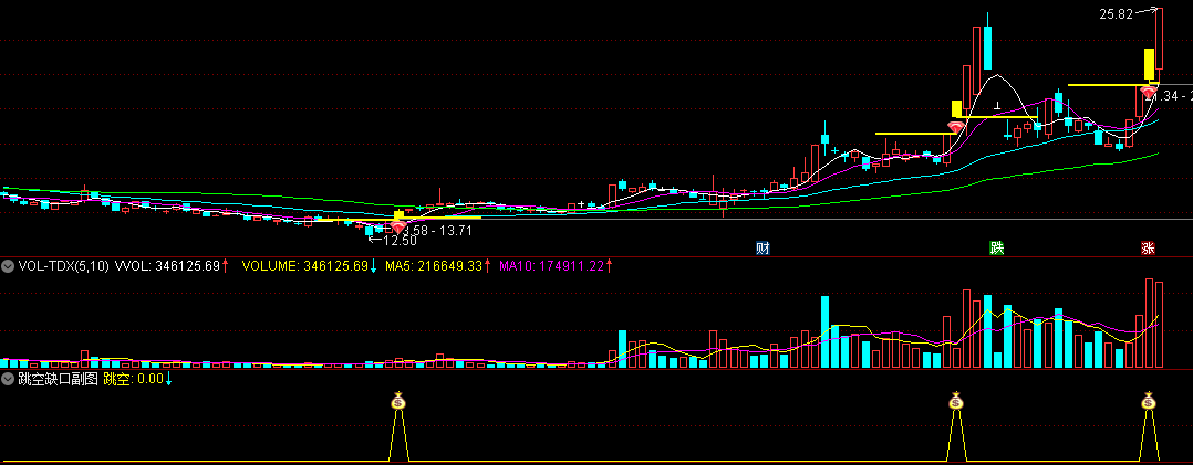 跳空缺口 指标条件,要求均线多头排列 向上跳空。