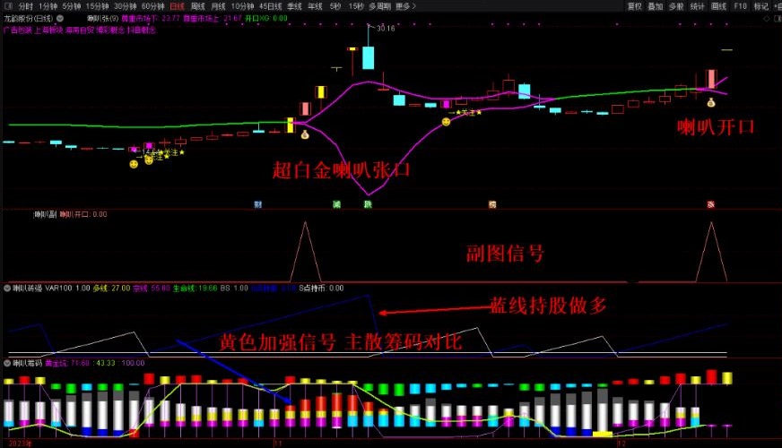 (【神龙喇叭战法】通达信神龙喇叭战法主副图套装选股指标,源码分享)