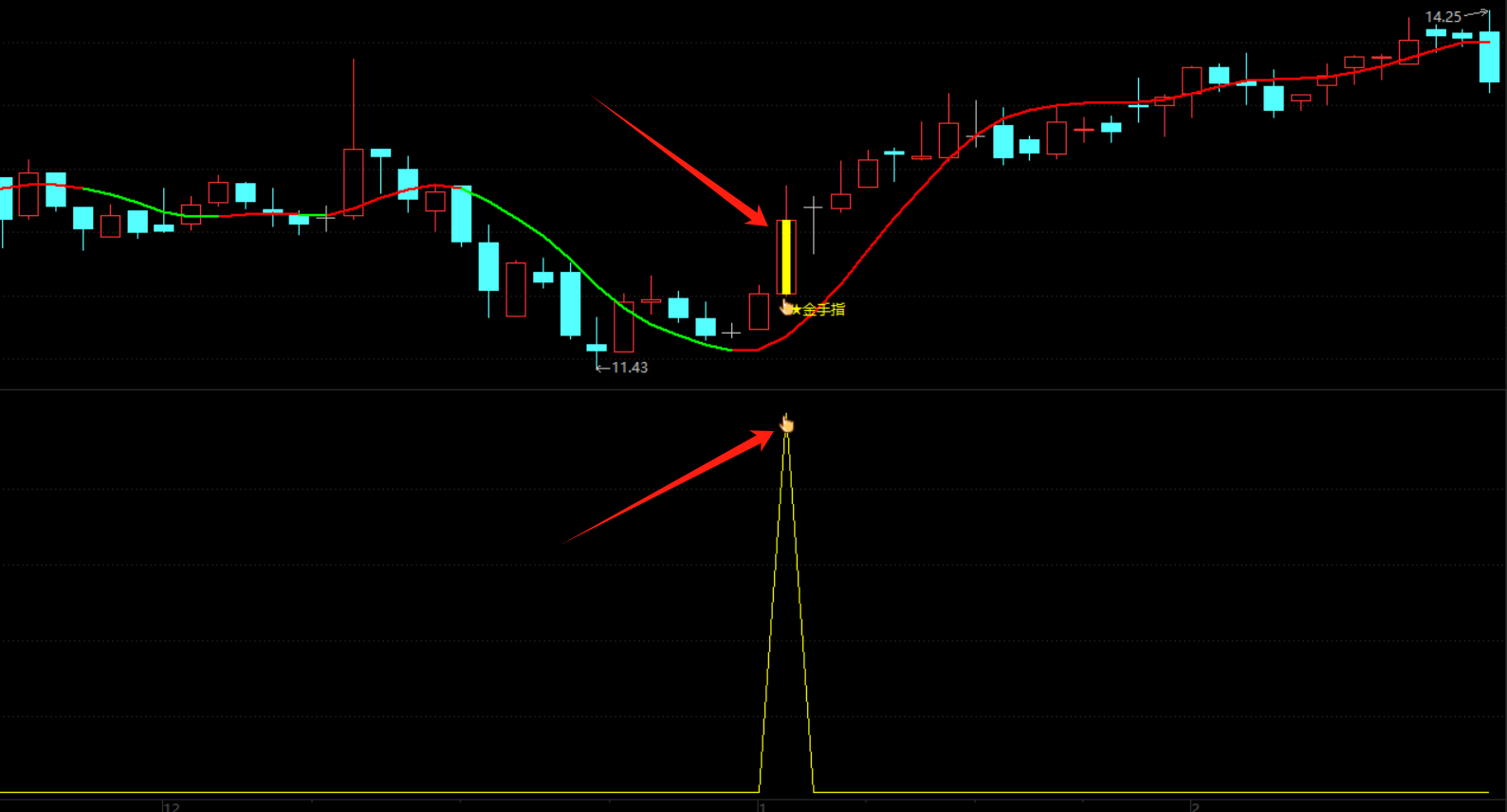 只有符合要求时才会出“金手指”信号。重点关注红线上出现的“金手指”信号!