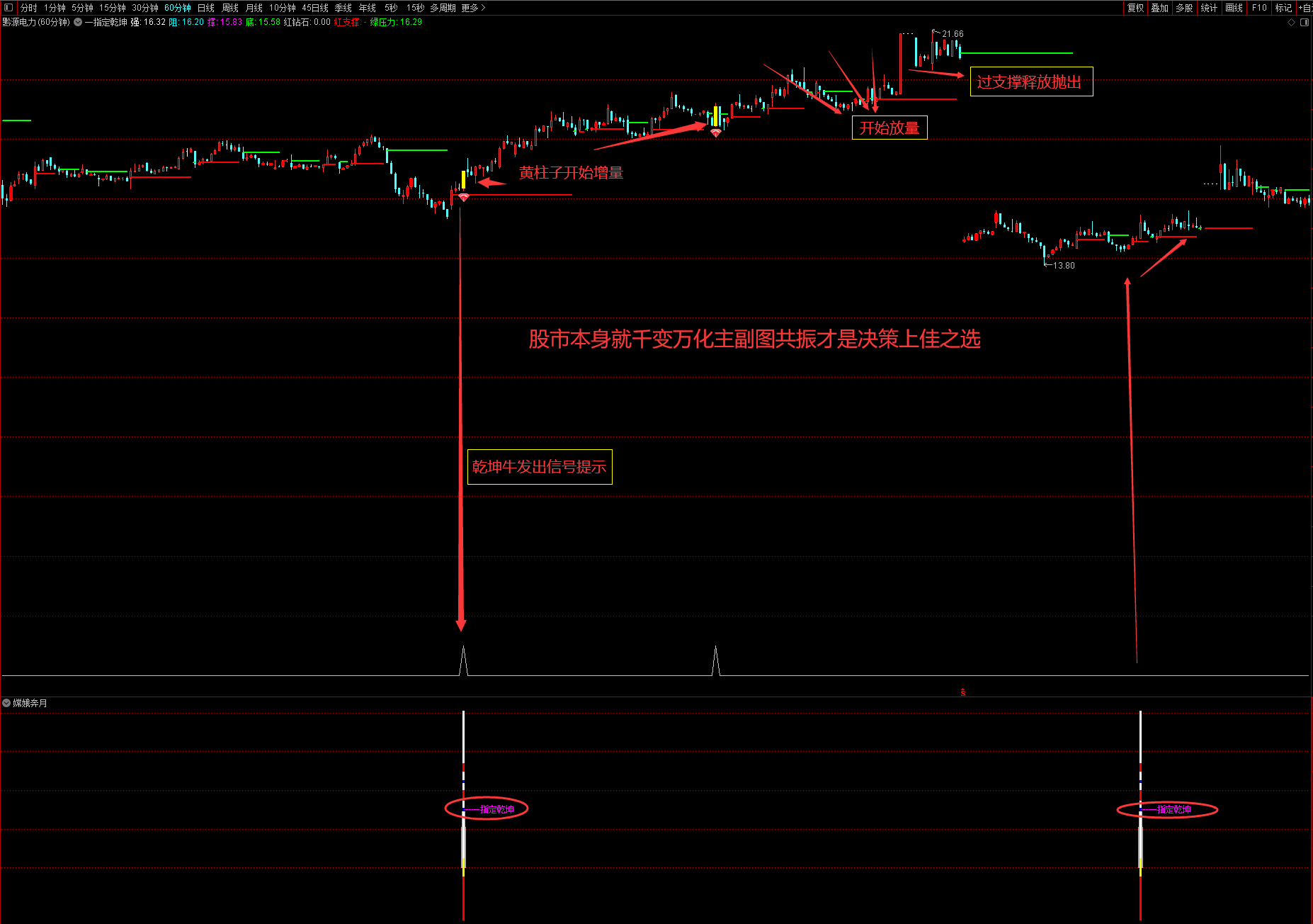(【一指定乾坤】精准猎手三点一星 乾坤牛魔王 副图释放信号 主图量化指标参考 附 主图 副图 选股)