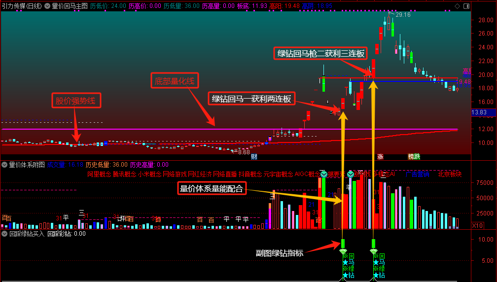 通达信【庄家启动+动能三号】套装指标1主图1幅图2选股庄家启动配合动能三号抓龙头胜率高