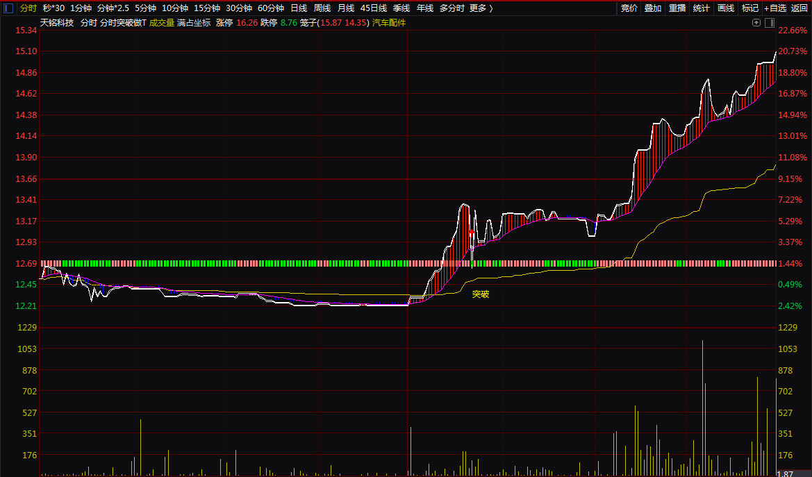 分时突破做T分时主图。T+0神器,可用于股票,可转债,期货等做T+0.无未来,不漂移.
