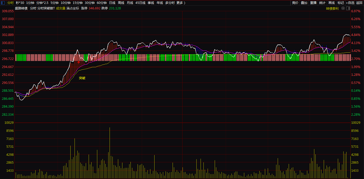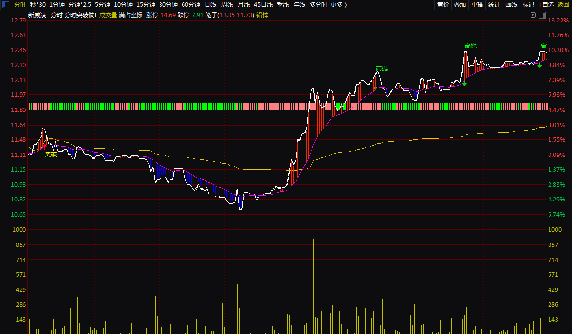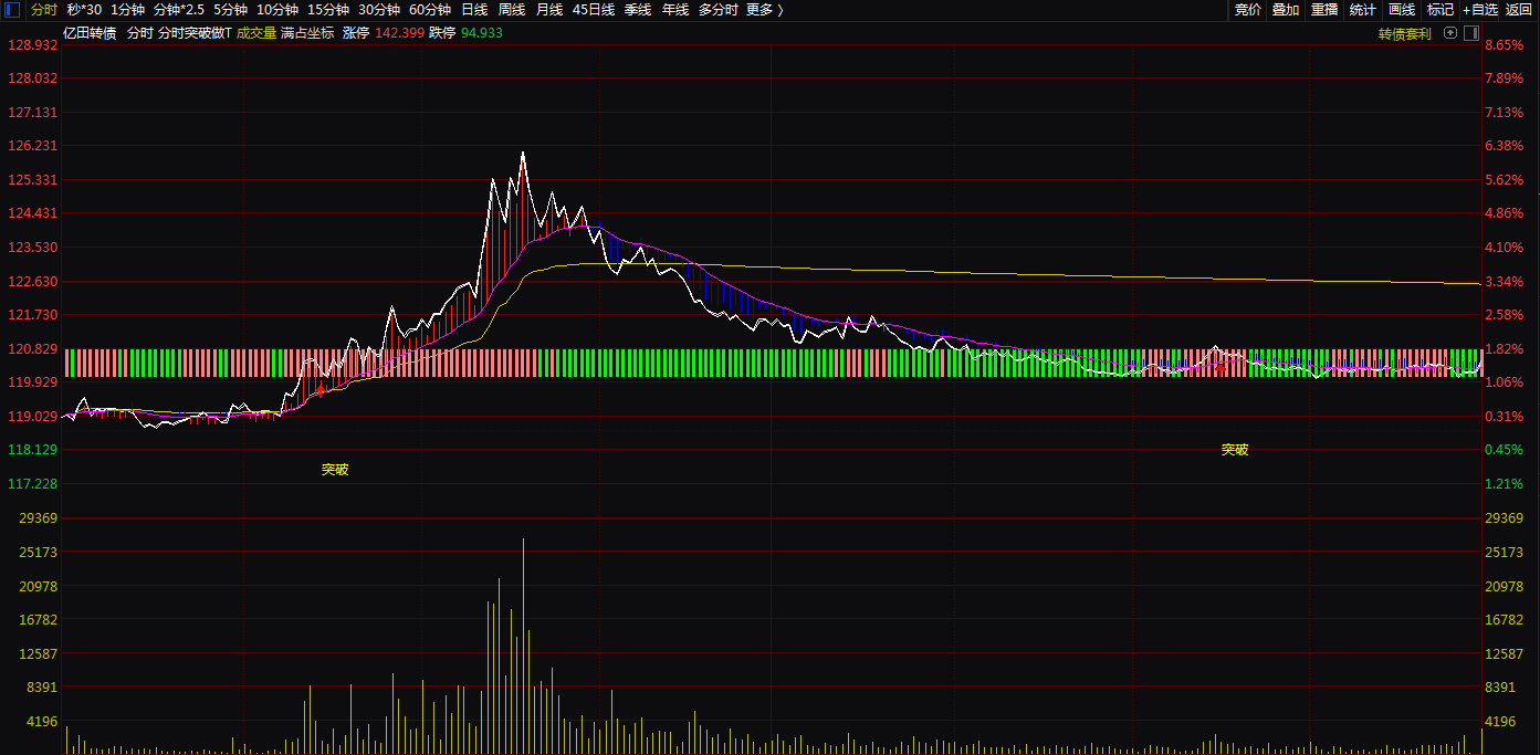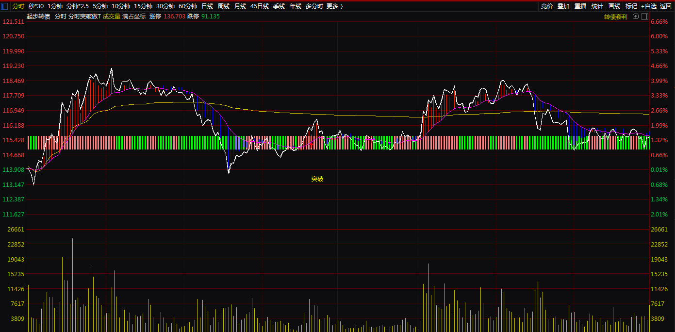 (分时突破做T分时主图。T+0神器,可用于股票,可转债,期货等做T+0.无未来,不漂移.)