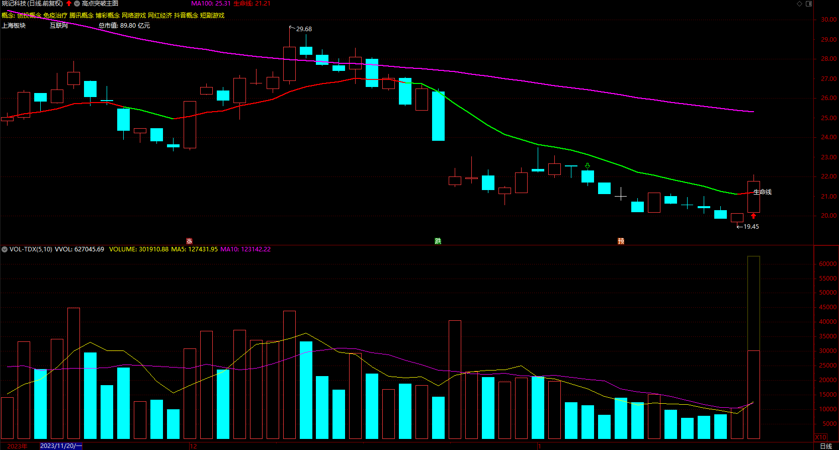 DRAWTEXT(起涨K,L*0.99,'↖起涨K'),COLORWHITE;