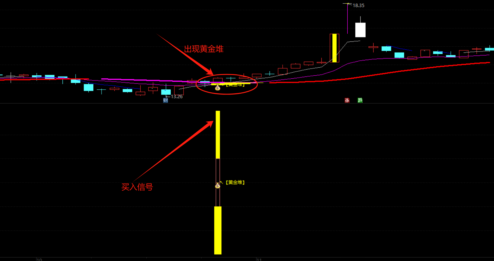 (【黄金堆】通达信黄金堆主副图套装选股指标,源码分享)