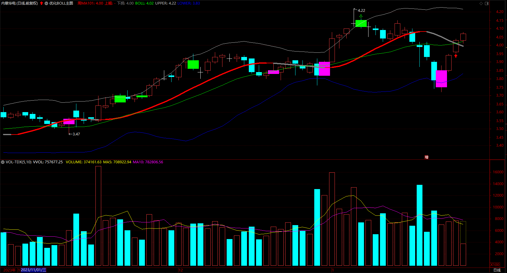 优化boll主图 通达信操盘趋势线指标公式 无未来 源码