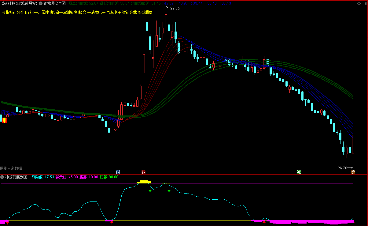 此指标通过复杂的算法,综合考量股票所属板块的行业属性、概念热点以及股价均价的波动、成交量的异动等多个维度,计算出股票的潜力指数。通过直观的图形和颜色变化,为我们提供清晰的市场趋势分析和买卖信号。