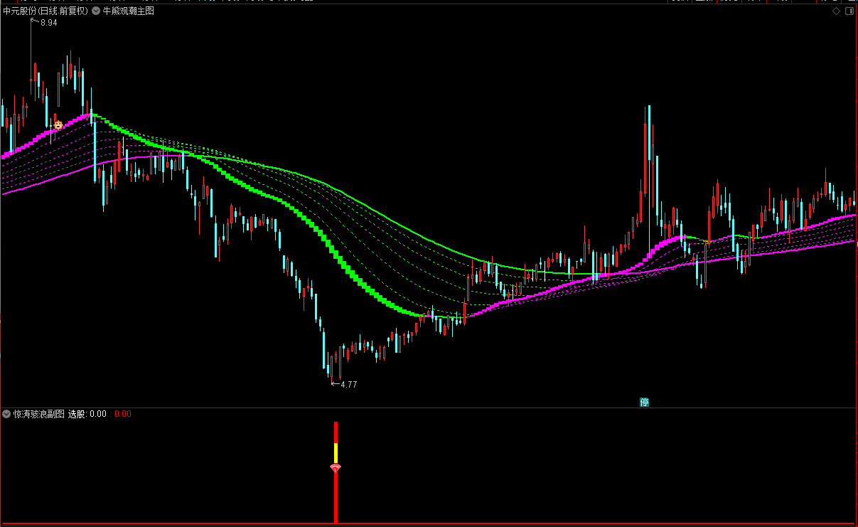 (【通达信】牛熊观潮主图+惊涛骇浪副图选股公式,源码分享)