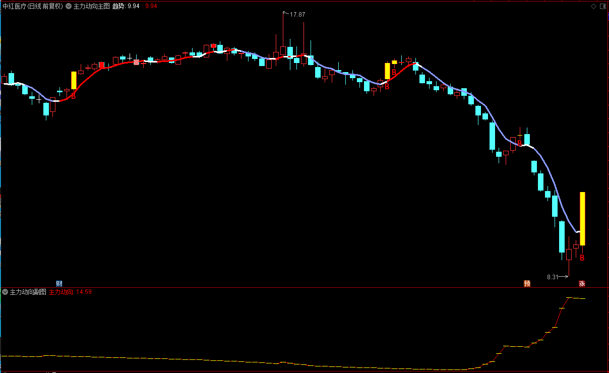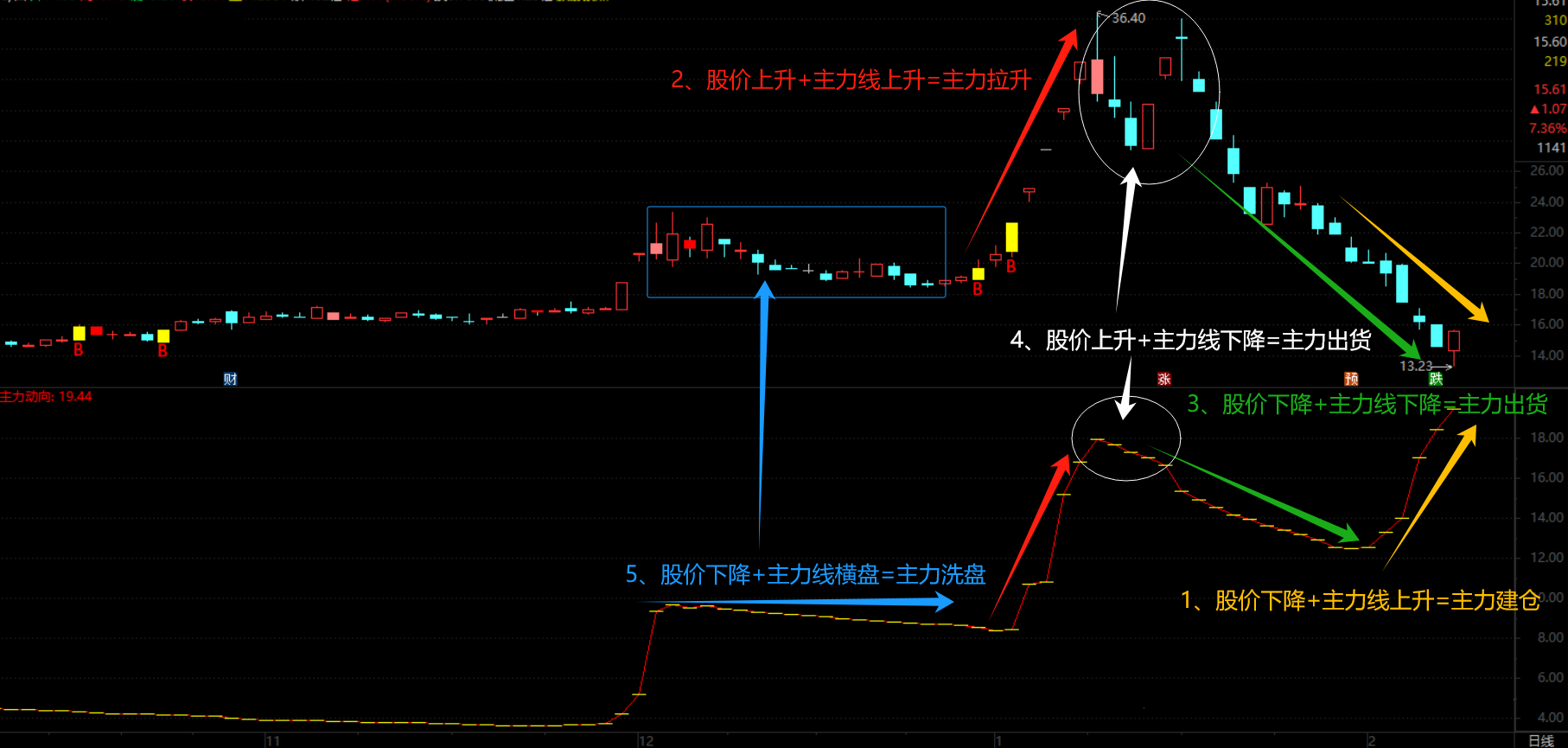 通达信【主力动向】通达信主力动向主副图选股指标,源码分享