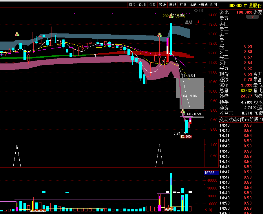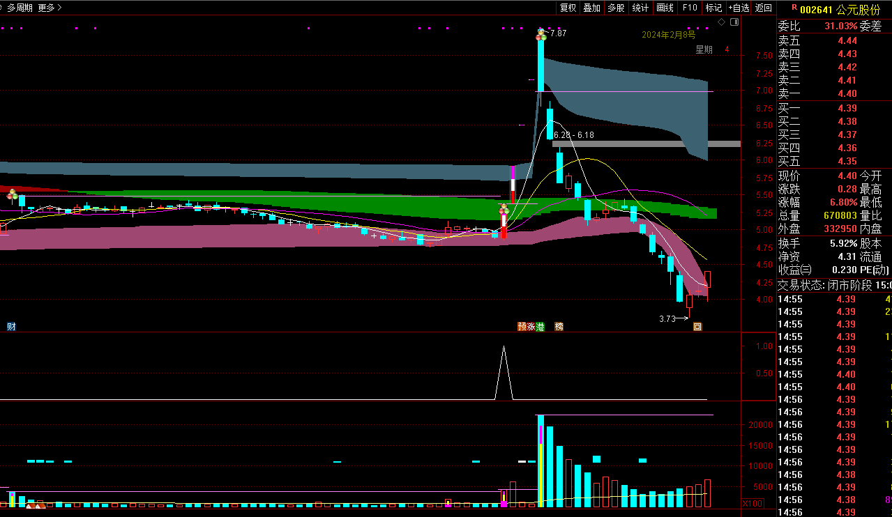 (财富选股高量资金承接.主图分析趋势.成交量平台清楚看到主力行为.选股清晰.多功能指标同步对应量价.)