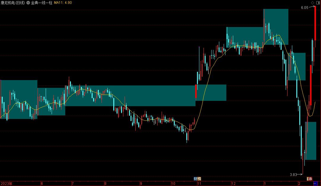 (金典通达信一线一柱主图指标源码,股市长红!!!)