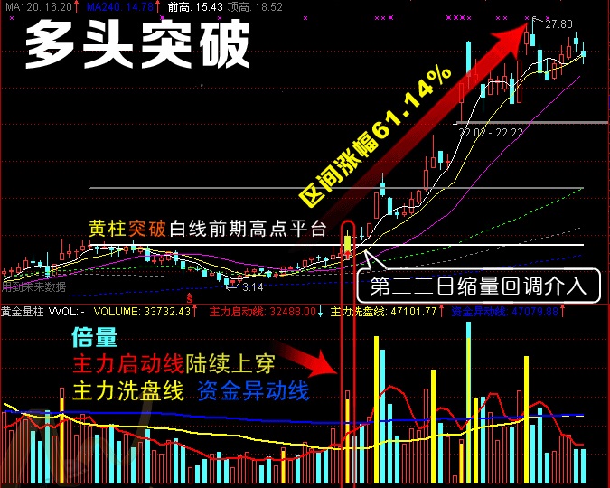 用途:表示中期的成交量趋势,可能代表主力资金的洗盘行为。