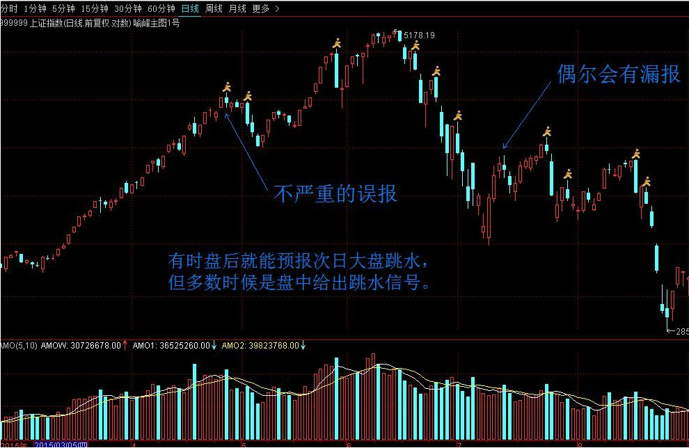 当满足“跳水迹象”条件时,本指标会在1.01倍的最高价位置绘制15号图标,以提醒投资者注意潜在的交易信号。
