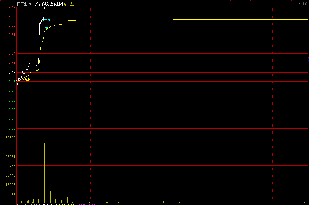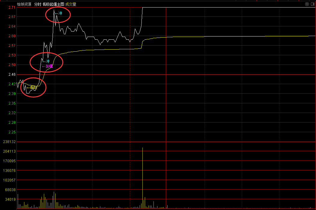 分时上,低吸信号、起爆信号、冲信号,三个信号提示,低吸信号表示相对阶段底部作为当天T+0的买入点,冲信号表示量价齐升有冲击涨停板的潜力,起爆信号表示股价突破形态。