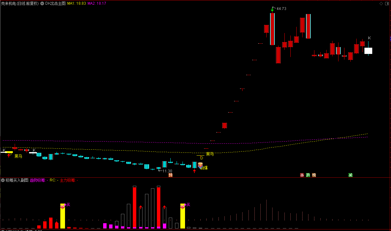 【上攻45度】通达信上攻45度主图+上攻量能副图指标!趋势股翻倍大牛股低吸策略