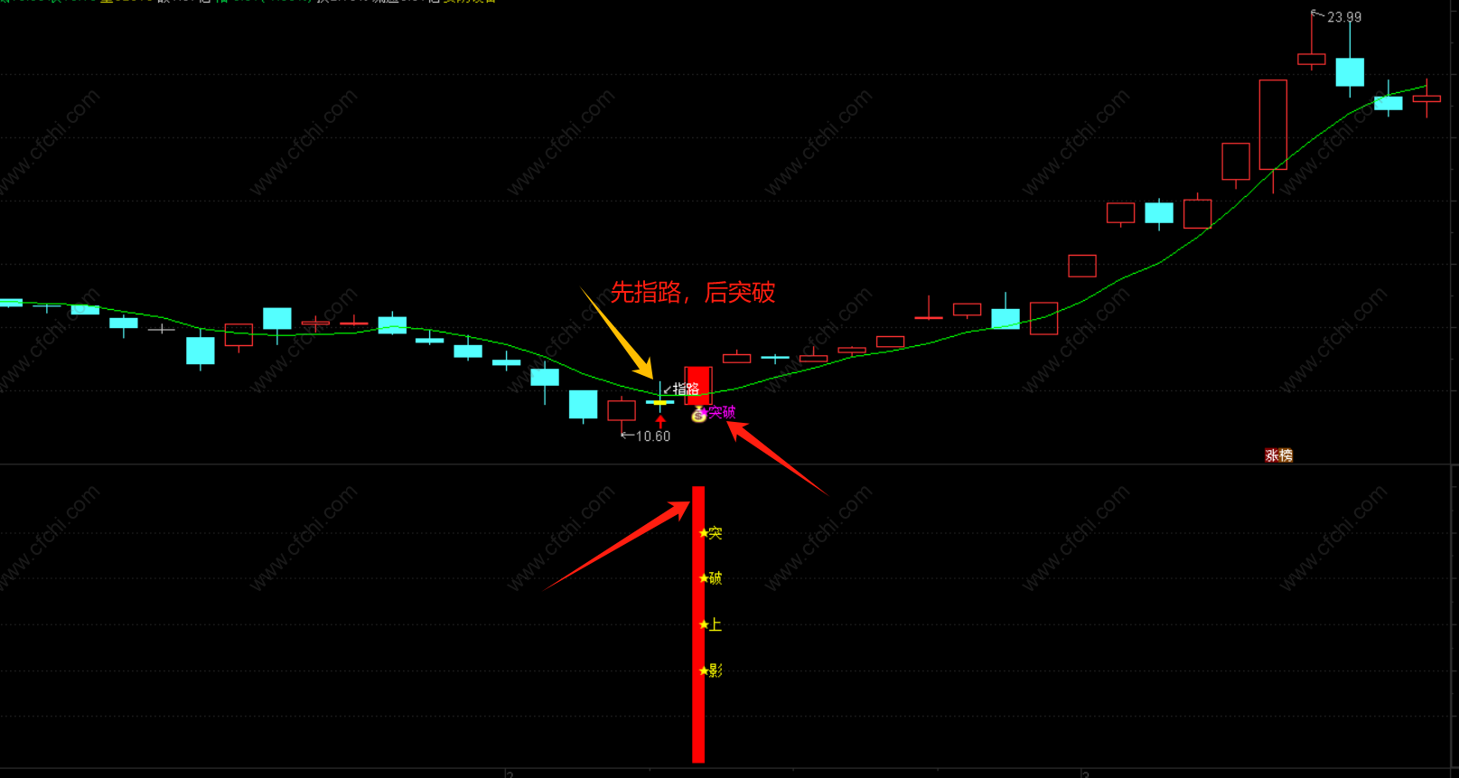 不是所有的上影线的第二天都会出现信号,一定是“先指路,后突破”。