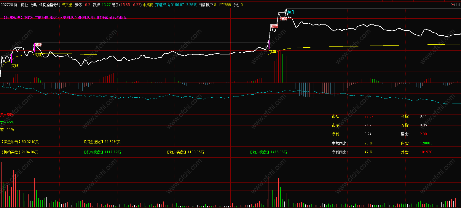 机构操盘分时抓板分时主图图示实例: