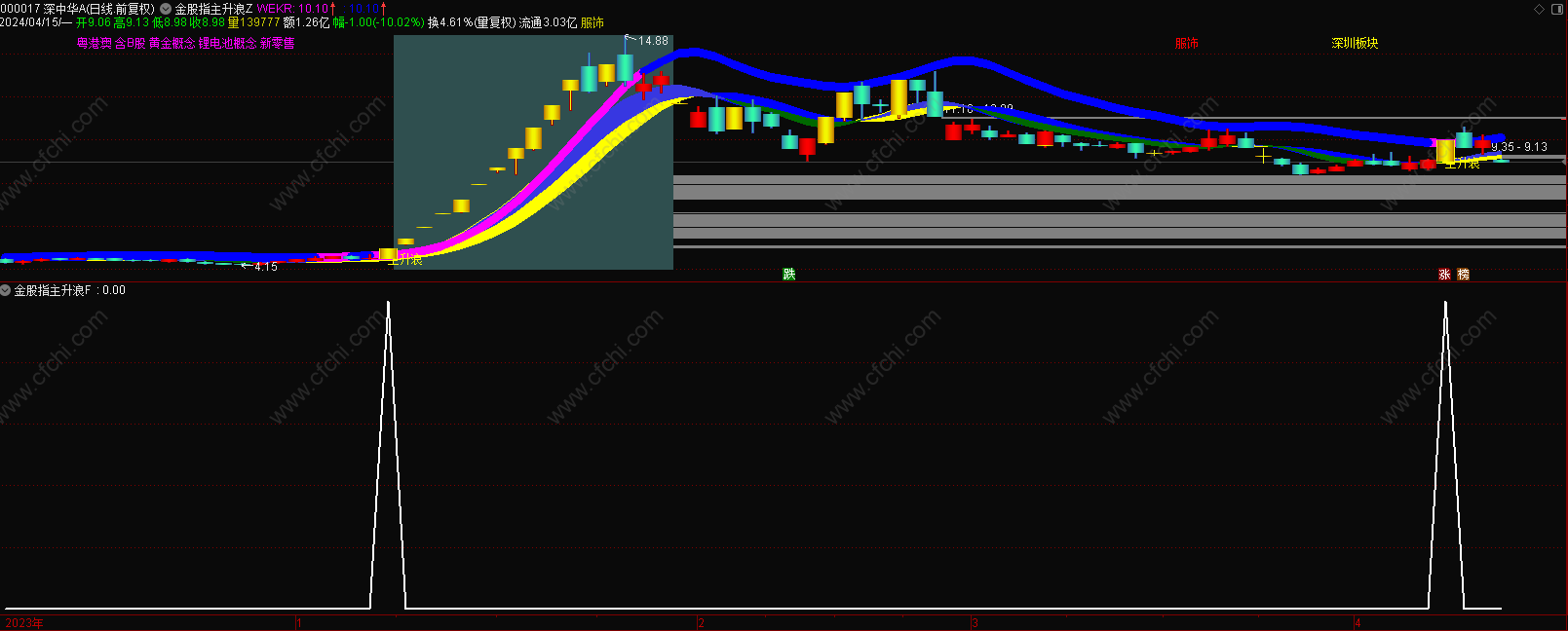 (金典捉妖金股指主升浪选股附图主图指标,无未来,出票后再加以甄选!)
