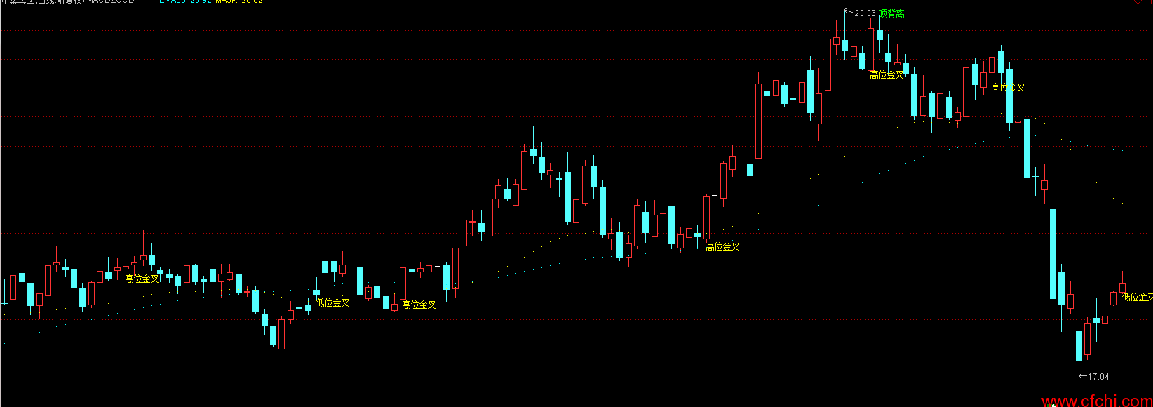 高位金叉:=CROSS(DIFF,DEADD) AND DIFF>-0.1;