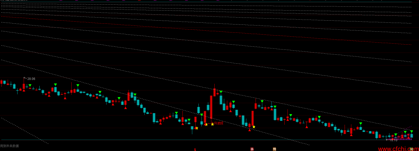 上6:IF(上斜线6<=天线*1.05,上斜线6,DRAWNULL),COLORAA00AA,DOTLINE;