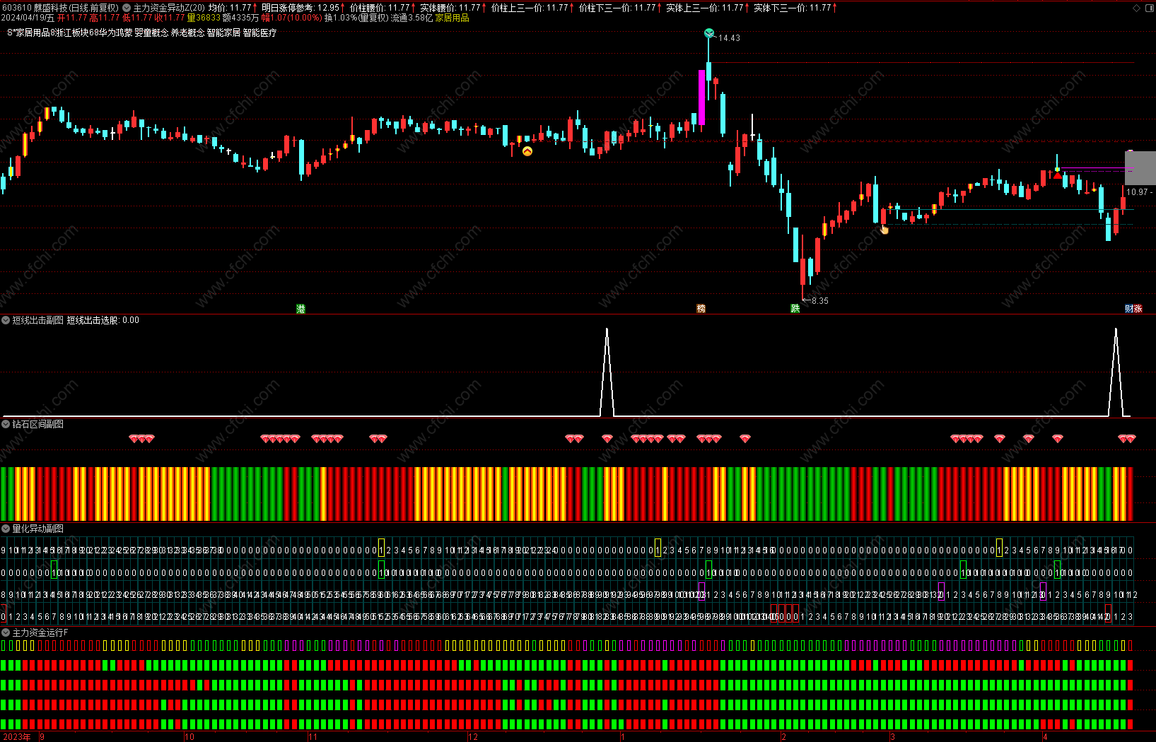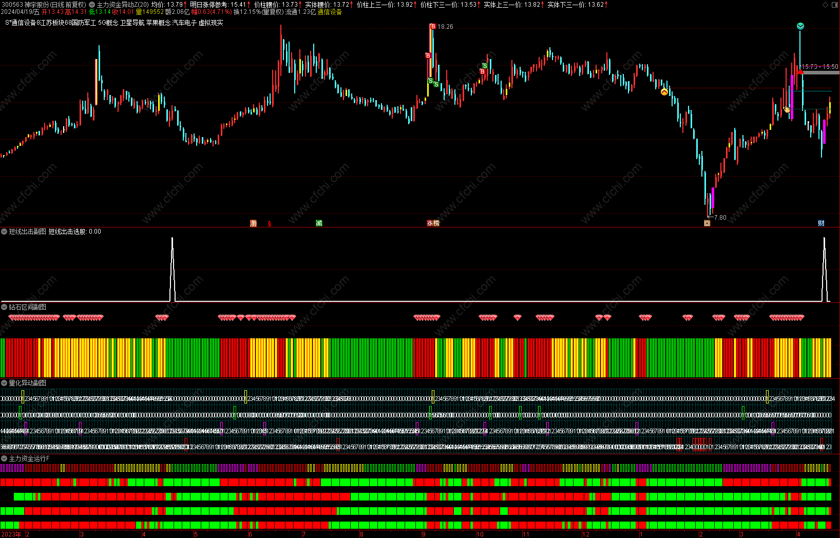 (金典通达信龙头波段主图主力资金量化异动钻石出击短线出击系列指标套装1主4副1选)