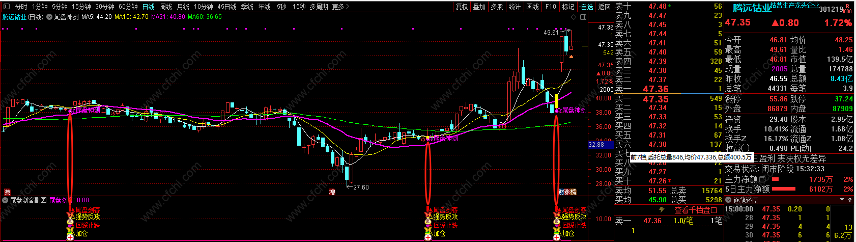 (反攻神将回踩止跌【尾盘神剑】 没有滞后一般出信号都有赚,抠一把主力就跑路!)