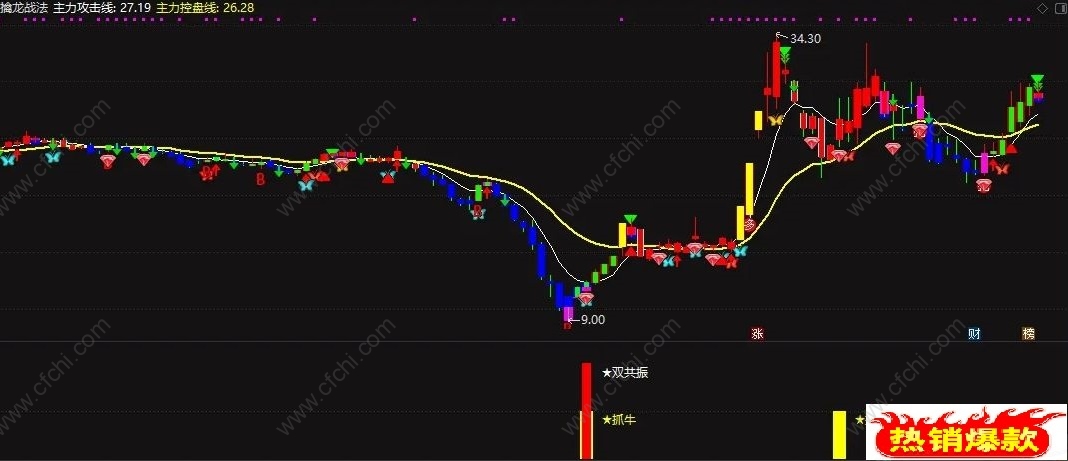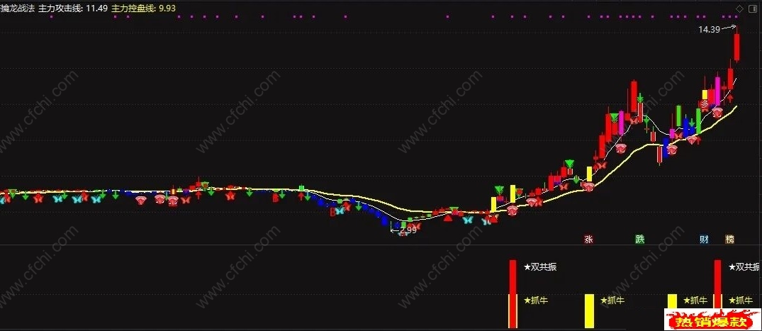 益盟操盘手【擒龙追踪主图】+【擒龙共振追涨】副图,多组信号共振,结合益盟BS买卖更好用