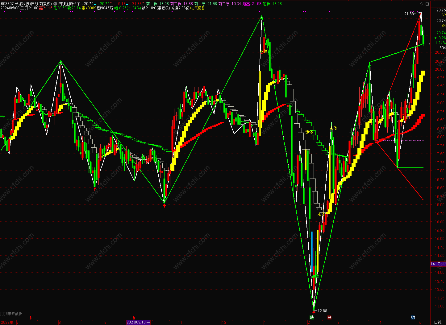 (金典通达信四线主图格子源码,股市长虹!)