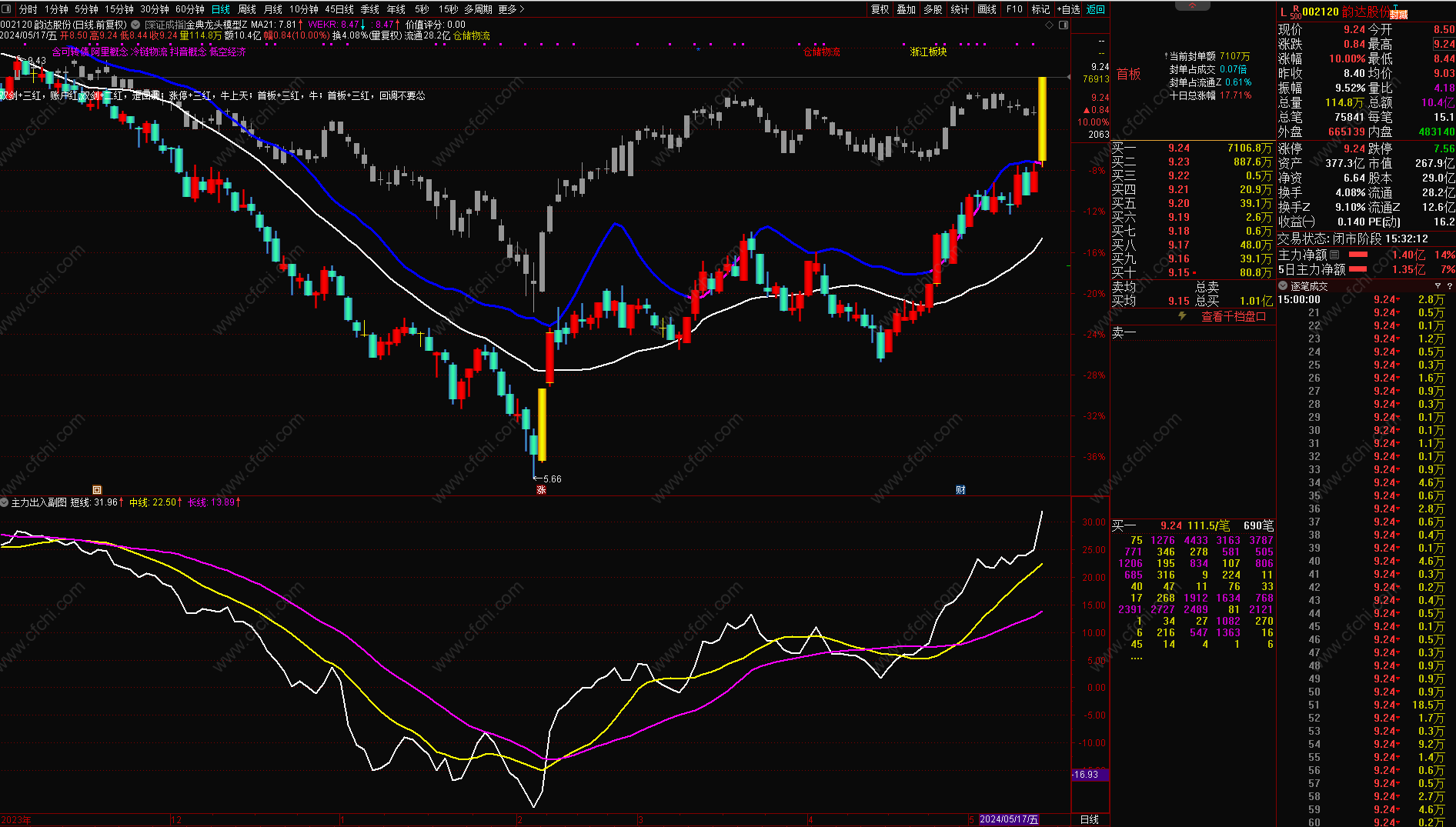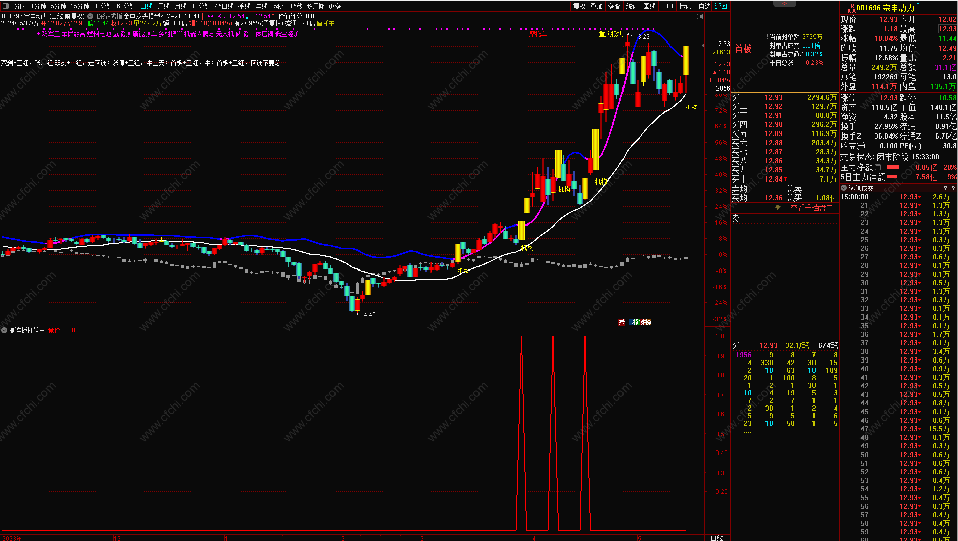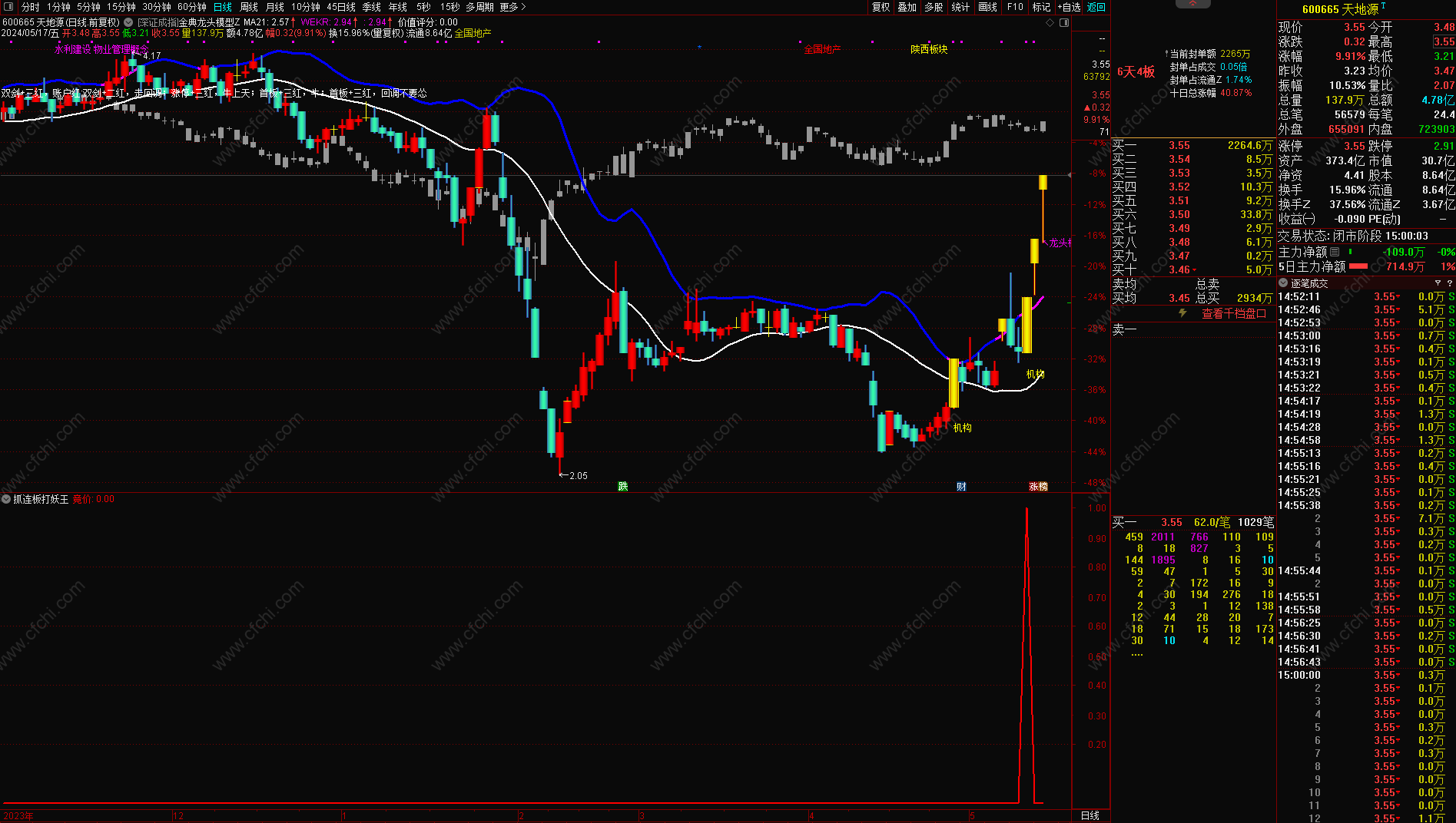 6、信号出现时的前一天如果是涨停板的,信号当天尽快不去追高买入,如果形态好的可以在次日看情况做低吸。