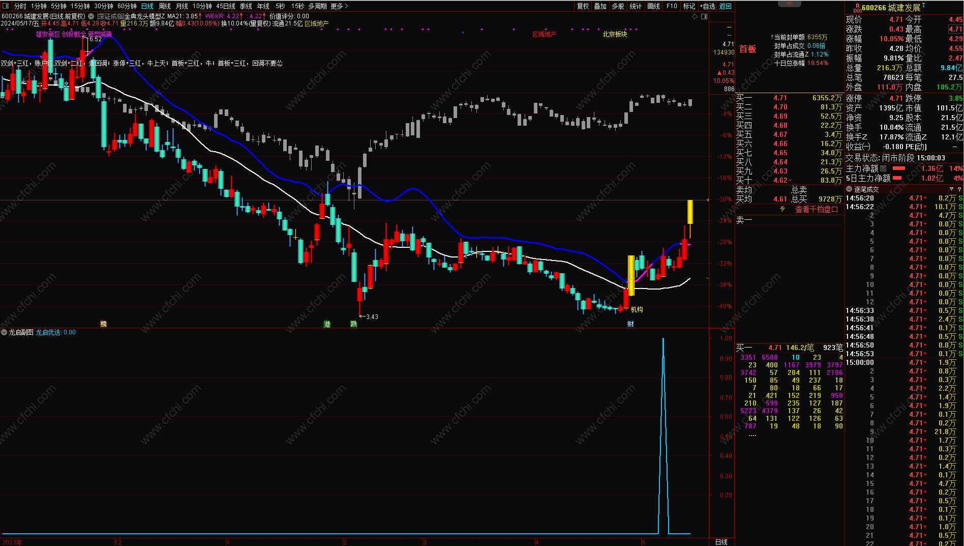 7、信号出现时涨幅已经接近涨停板的尽量不去追,如果信号形态是特别好的当日考虑杀入,也可以次日找机会做低吸。