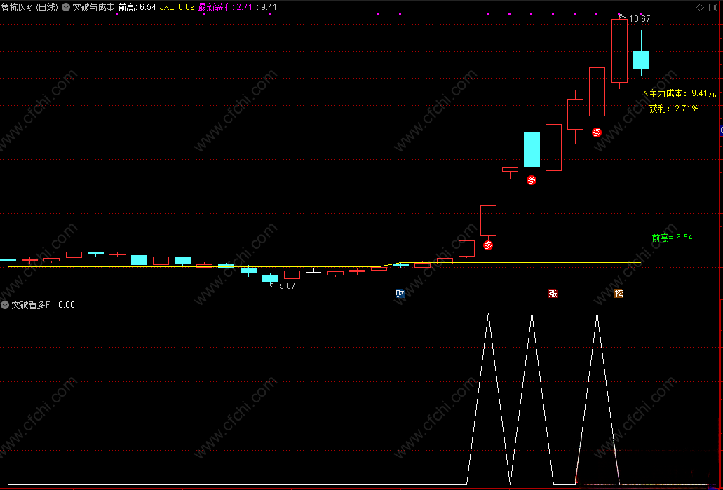 (通达信【突破与成本】一个突破信号+加上主力成本更方便的观察其有效性 主图附图选股 手机电脑通用)