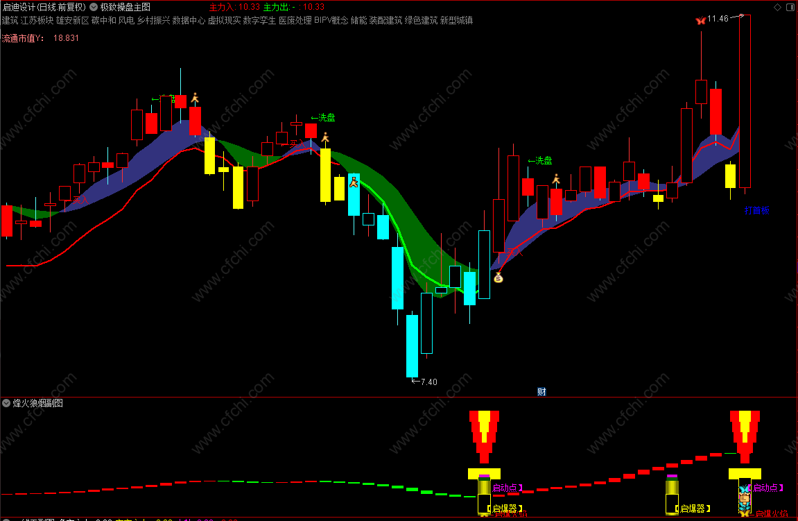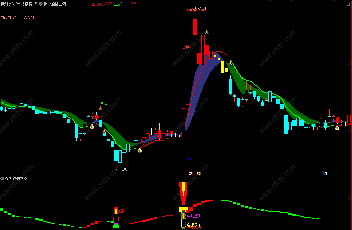 (【通达信】极致操盘线主图+烽火狼烟副图指标,主力进出有痕迹!源码分享)