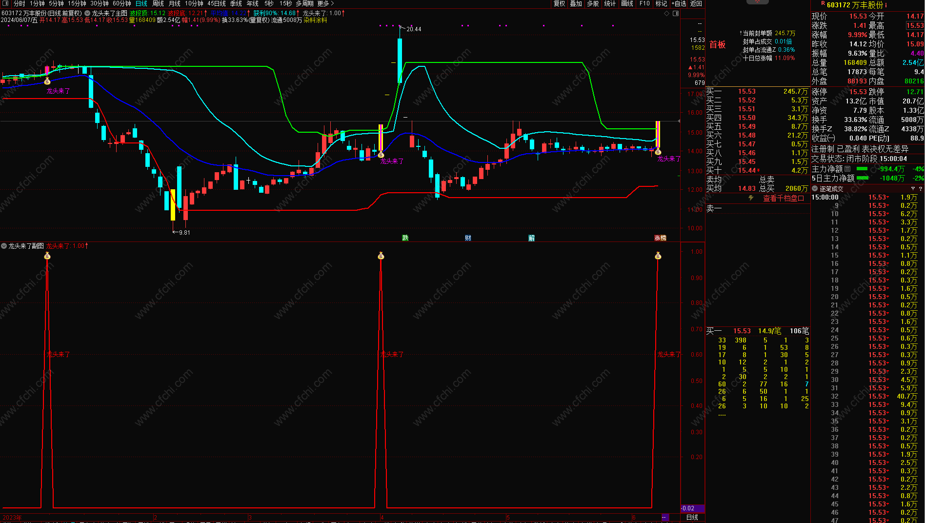 (金典通达信【龙头来了】套装指标 主副图+选股指标 )